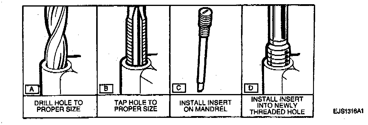 NOTE: Damaged threads may be reconditioned by drilling out, rethreading and installing a suitable thread insert. General purpose thread repair kits are available commercially.