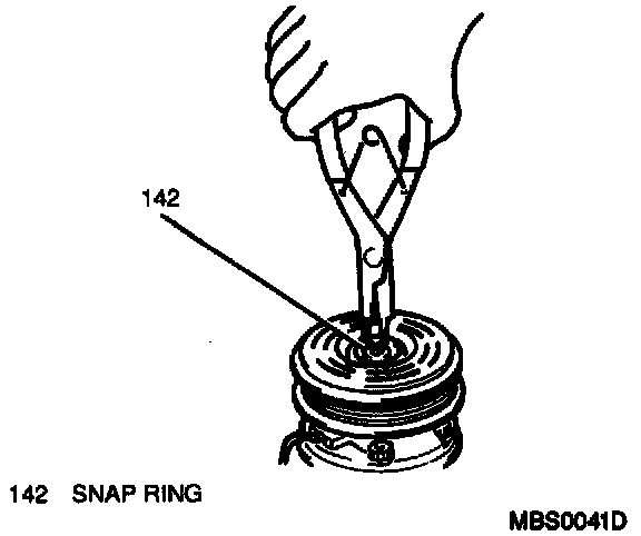 4. Clutch pulley snap ring and shim, using snap ring pliers.