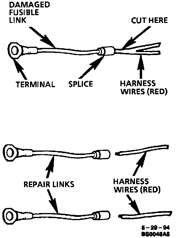 CAUTION: Fusible links cut longer than 225 mm (Approx. 9 in.) will not provide sufficient overload protection.