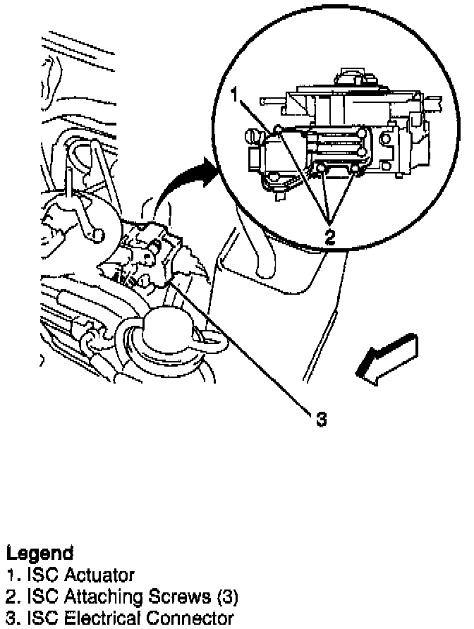 1. Install the ISC motor to TBI unit with the three screws. Tighten the ISC motor screws to 2.8 to 4.0 Nm (24 to 36 lb. in.).