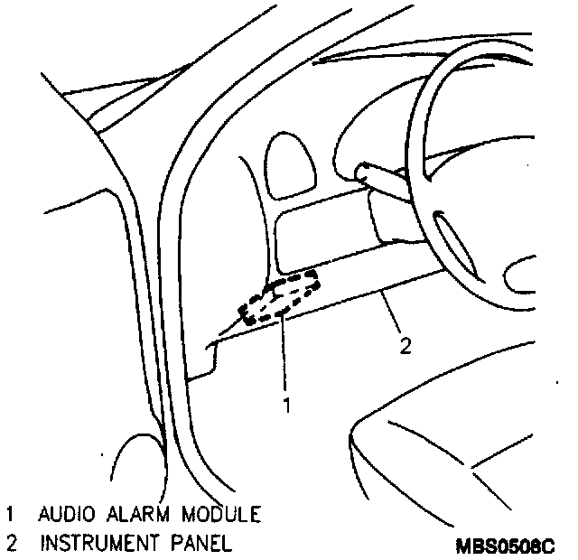 3. Slide audio alarm module off retaining bracket and remove from vehicle.