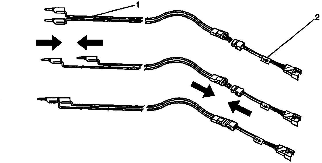^ Keep the SIR deployment harness (1) shorted until the air bag is to be deployed.