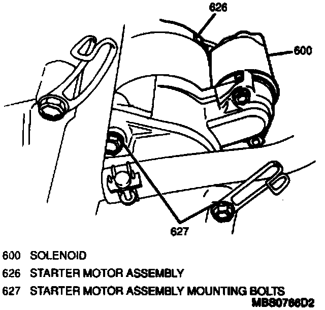 ^ Starter motor assembly mounting bolts to 23 N.m (17 lb. ft.).
