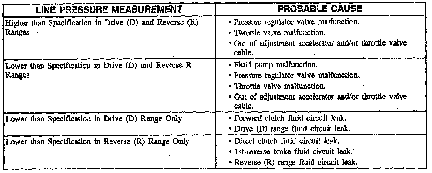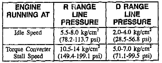 11. Place manual selector in Drive (D) range and record line pressure at idle speed (800 to 900 rpm).