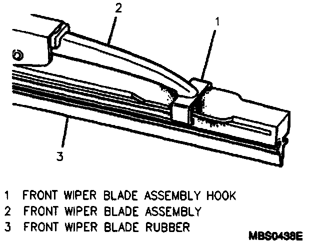 1. pull the front wiper blade rubber out of the wiper blade assembly hooks.