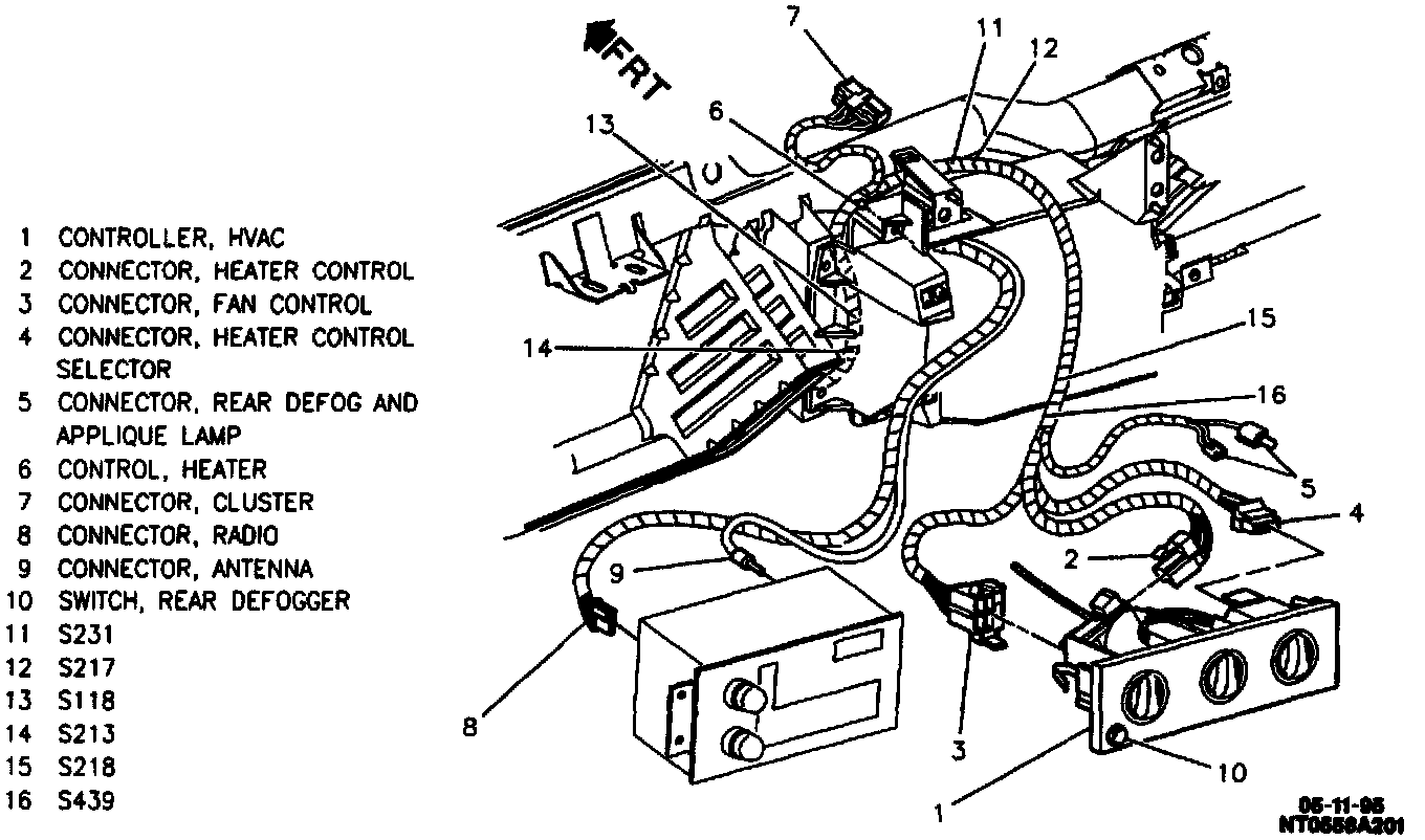 Center I/P Near HVAC Control Assembly: