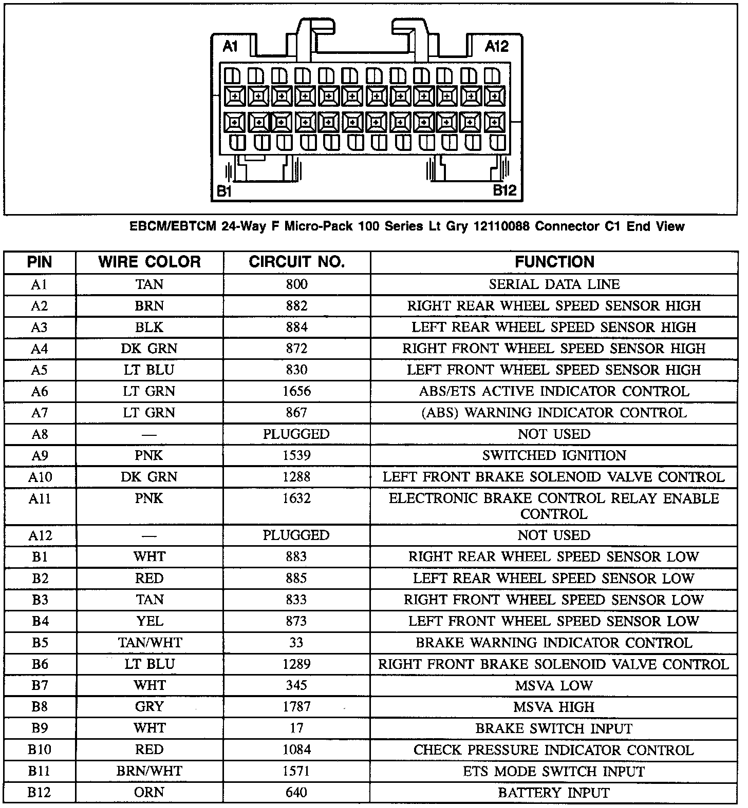 EBCM/EBTCM 24-Way F Micro-Pack 100 Series Lt Gry 12110066 Connector C1 End View: