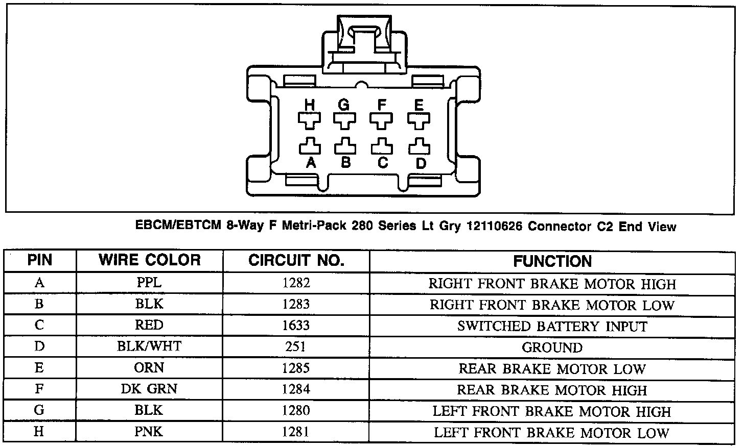 EBCM/EBTCM 8-Way F Metri-Pack 280 Series Lt Gry 12110626 Connector C2 End View: