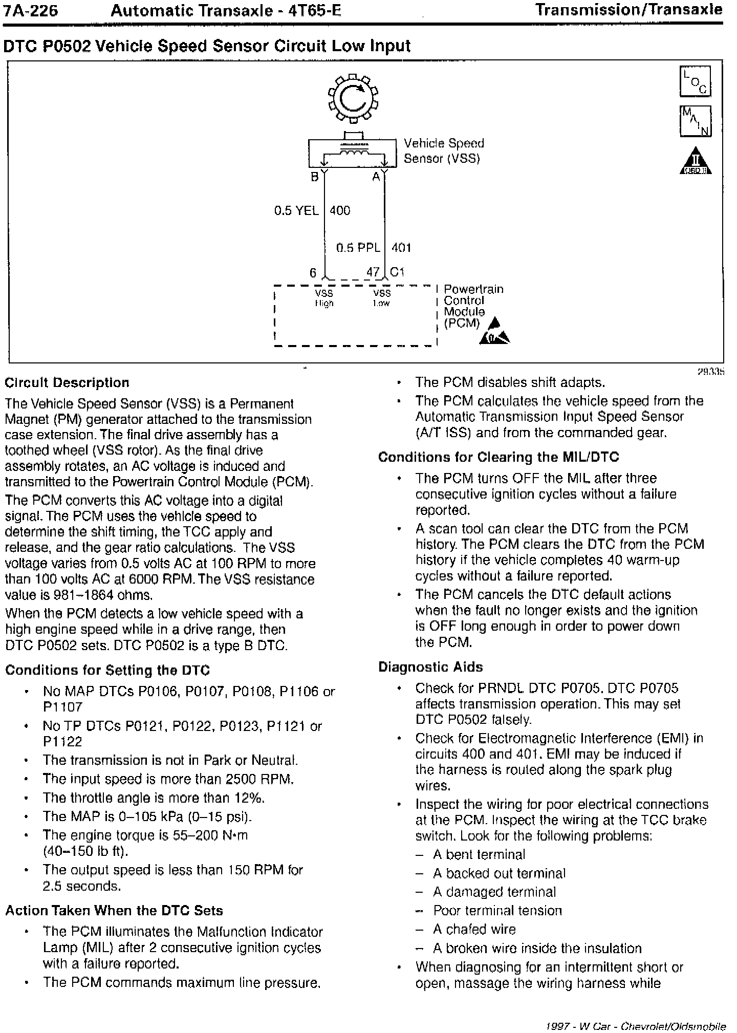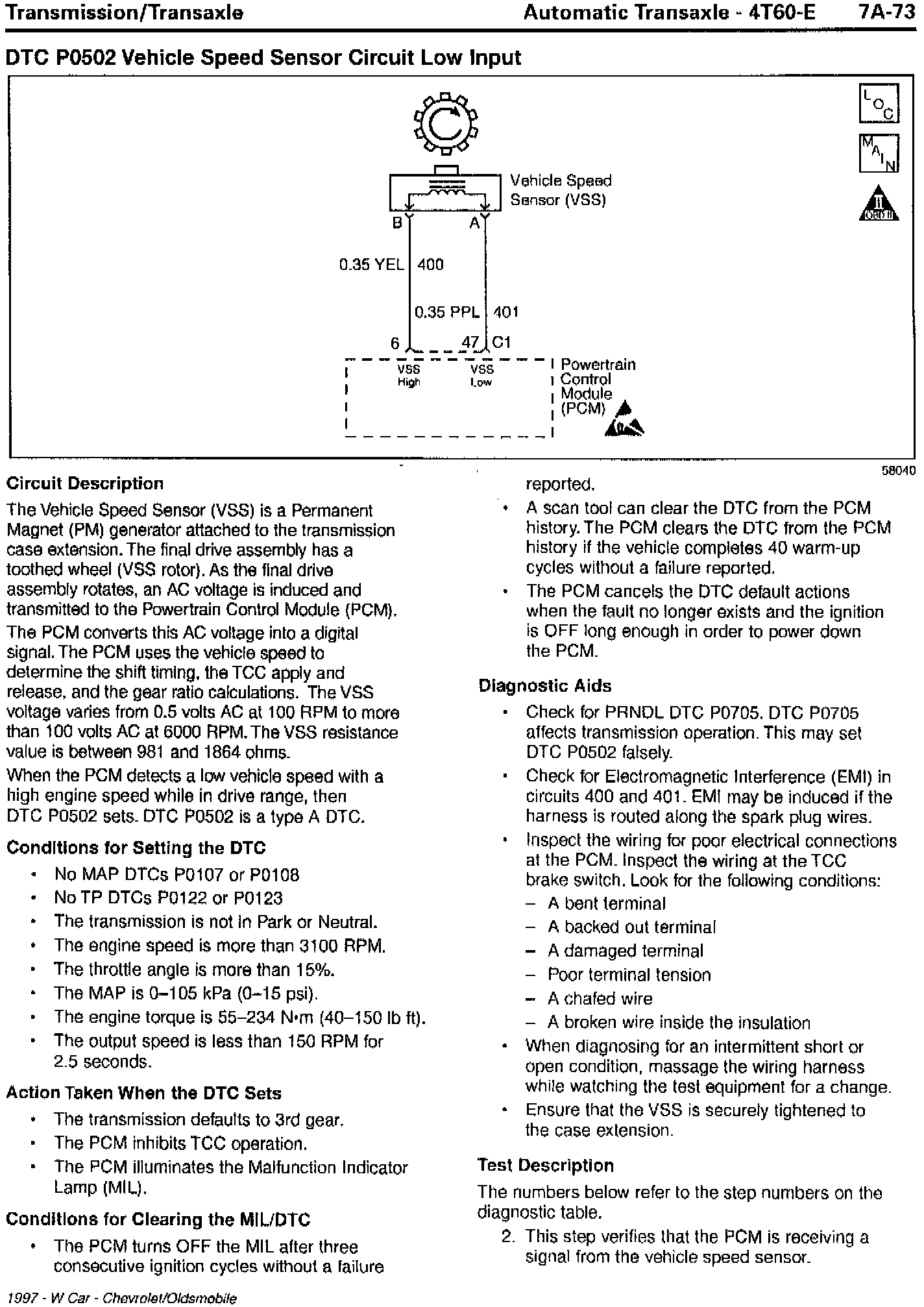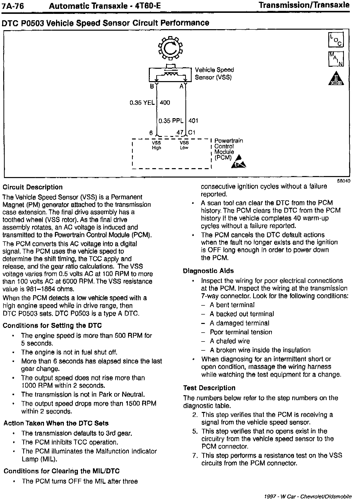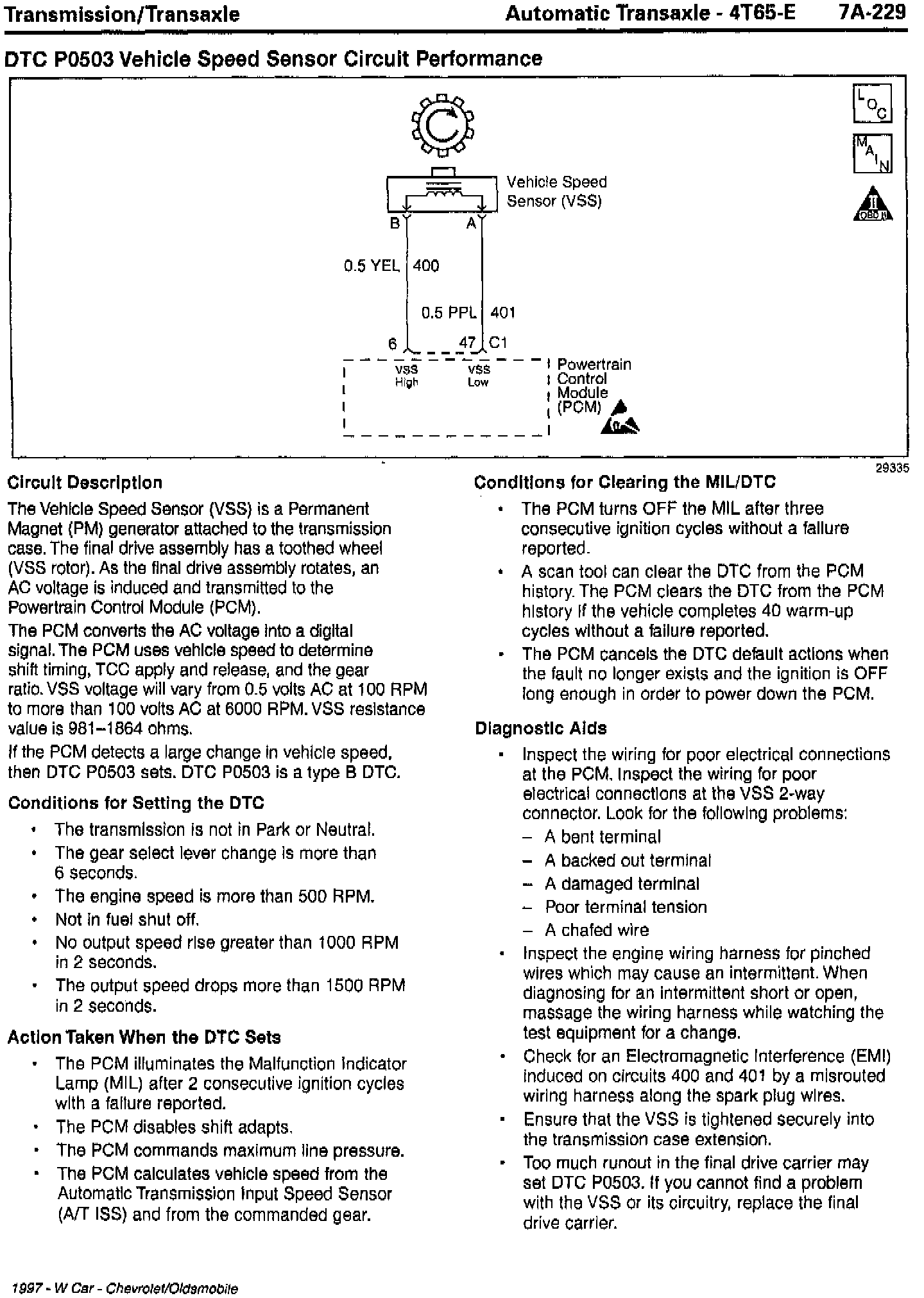 Section 7A - Transaxle/Transmission Updates for DTC P0502 Vehicle Speed Sensor Circuit Low Input and DTC P0503 Vehicle Speed Sensor Circuit Performance