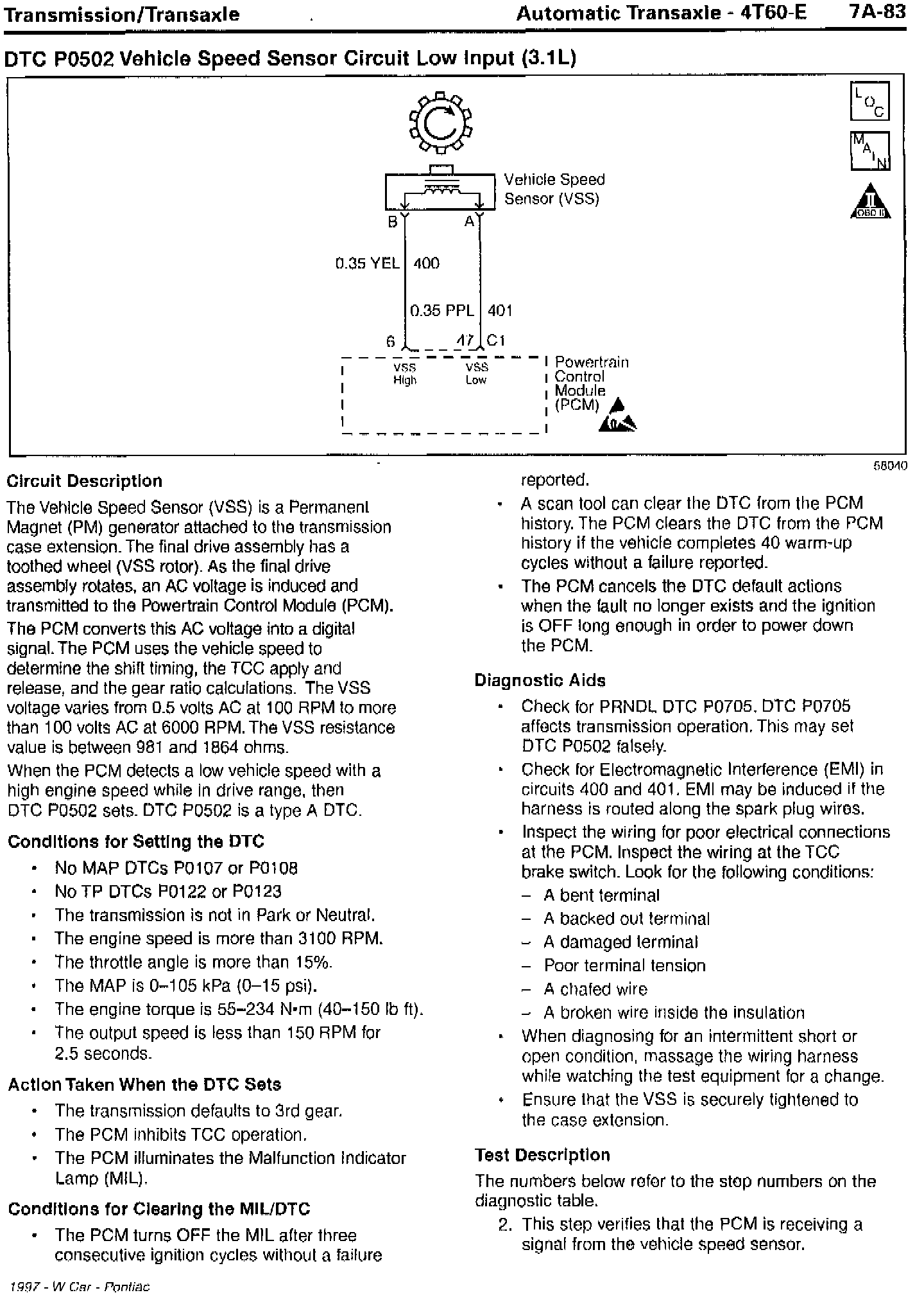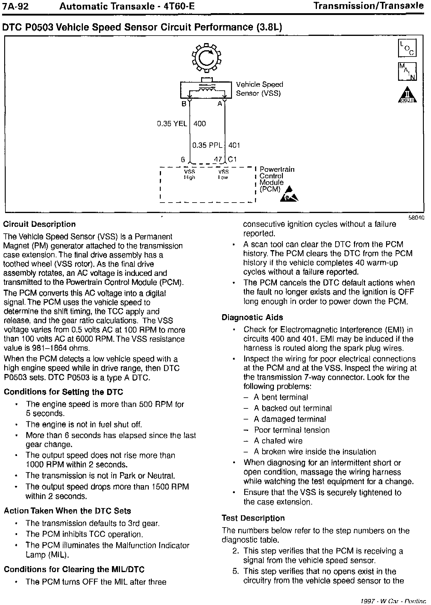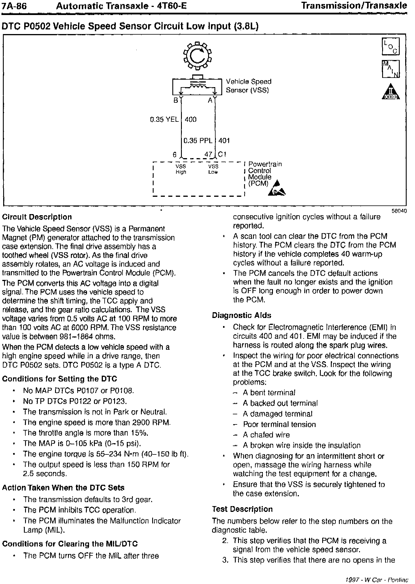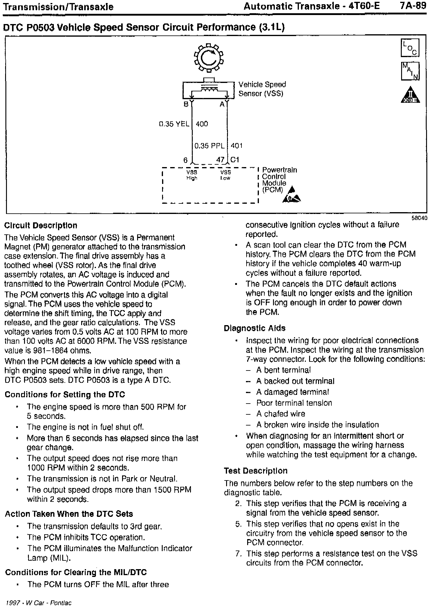 Section 7A - Transaxle/Transmission Updates for DTC P0502 Vehicle Speed Sensor Circuit Low Input and DTC P0503 Vehicle Speed Sensor Circuit Performance