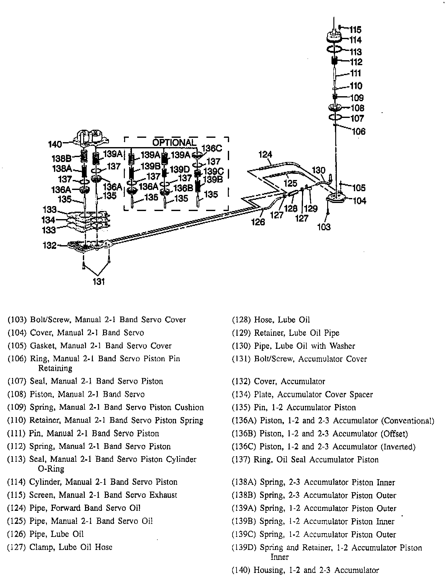 8. Manual 2-1 servo ring, seal, piston, cushion, retainer, pin, spring, o-ring, screen, and cylinder.