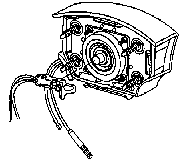 2. Use a flat bladed tool on the back side of the inflatable restraint steering wheel module, to release the four leaf springs. Gently pull on the module while the leaf springs are released.