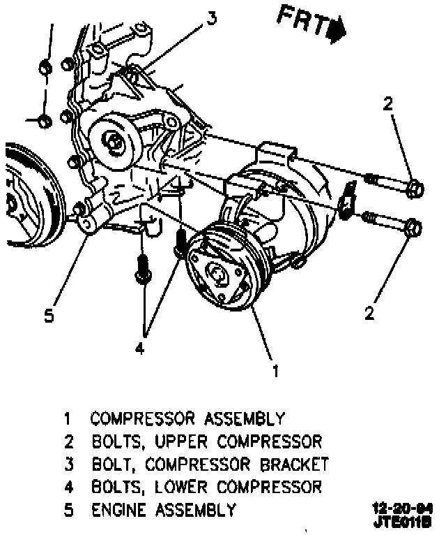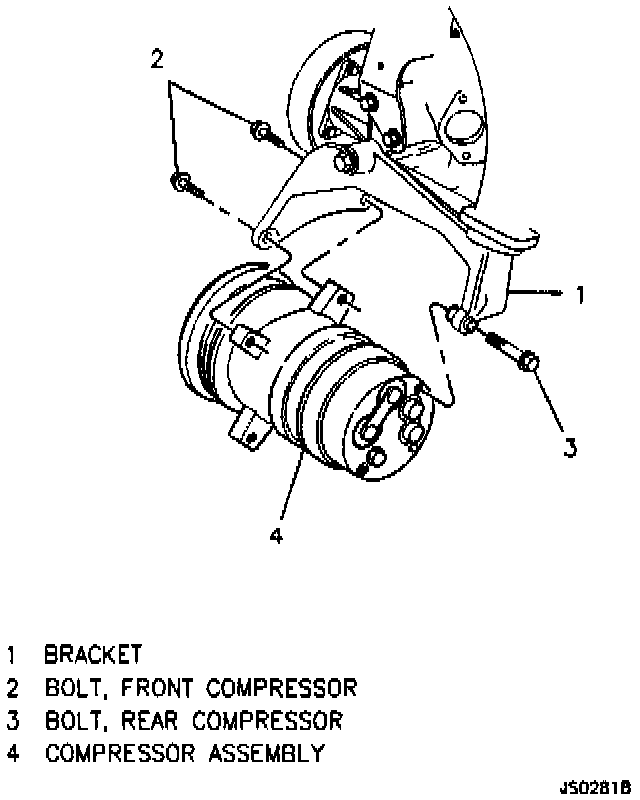 3. Compressor and compressor attaching bolts.