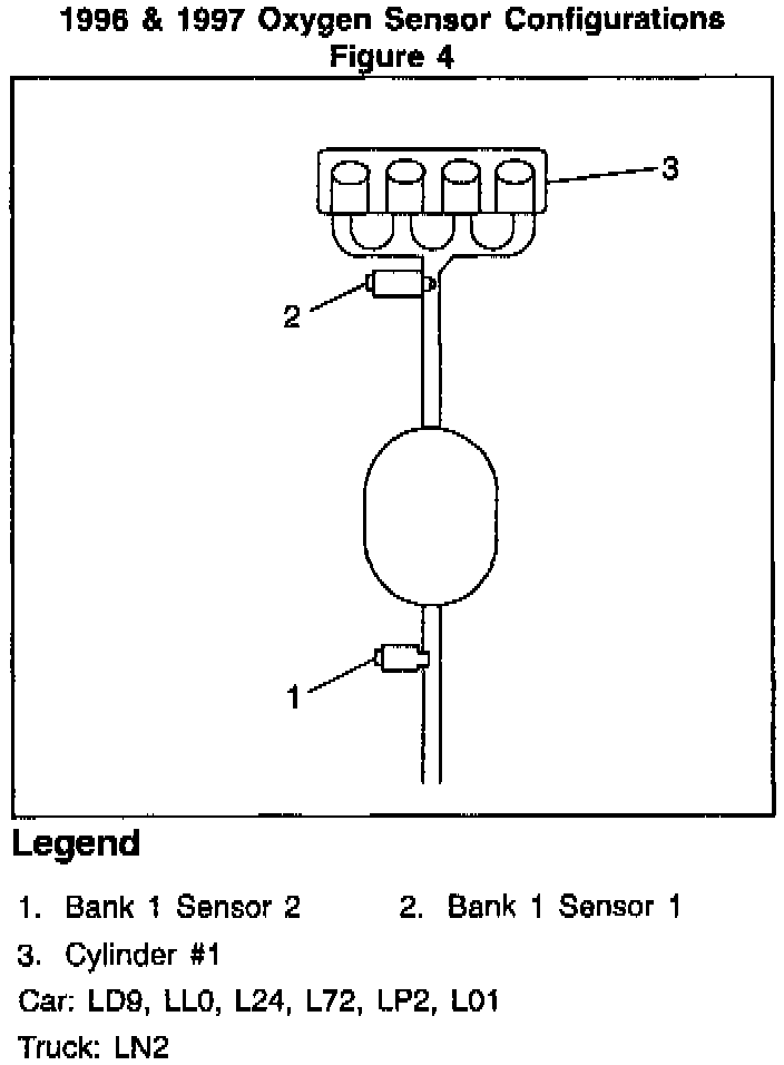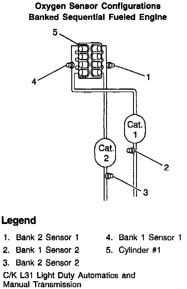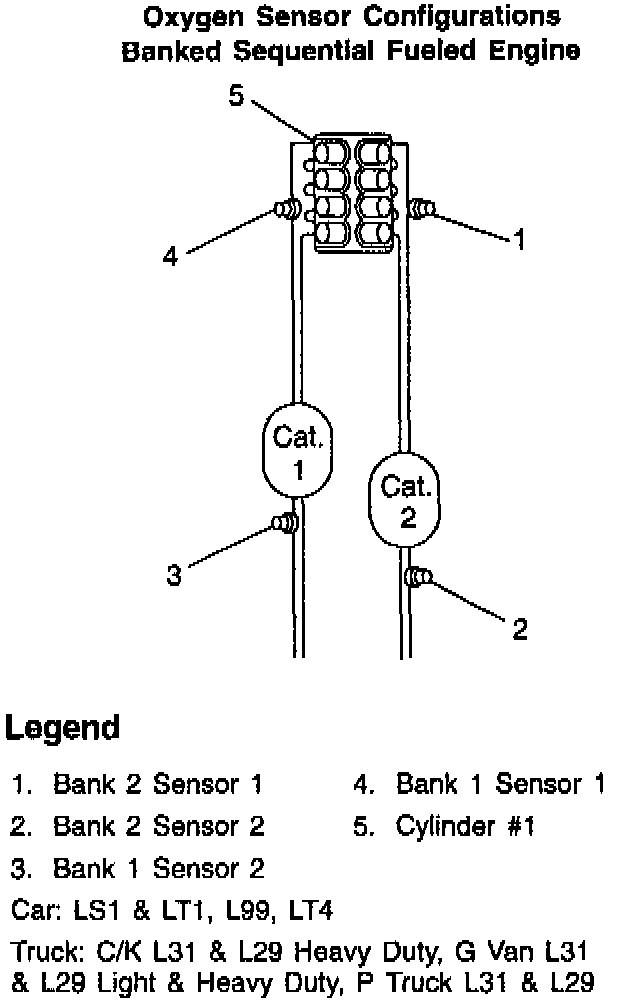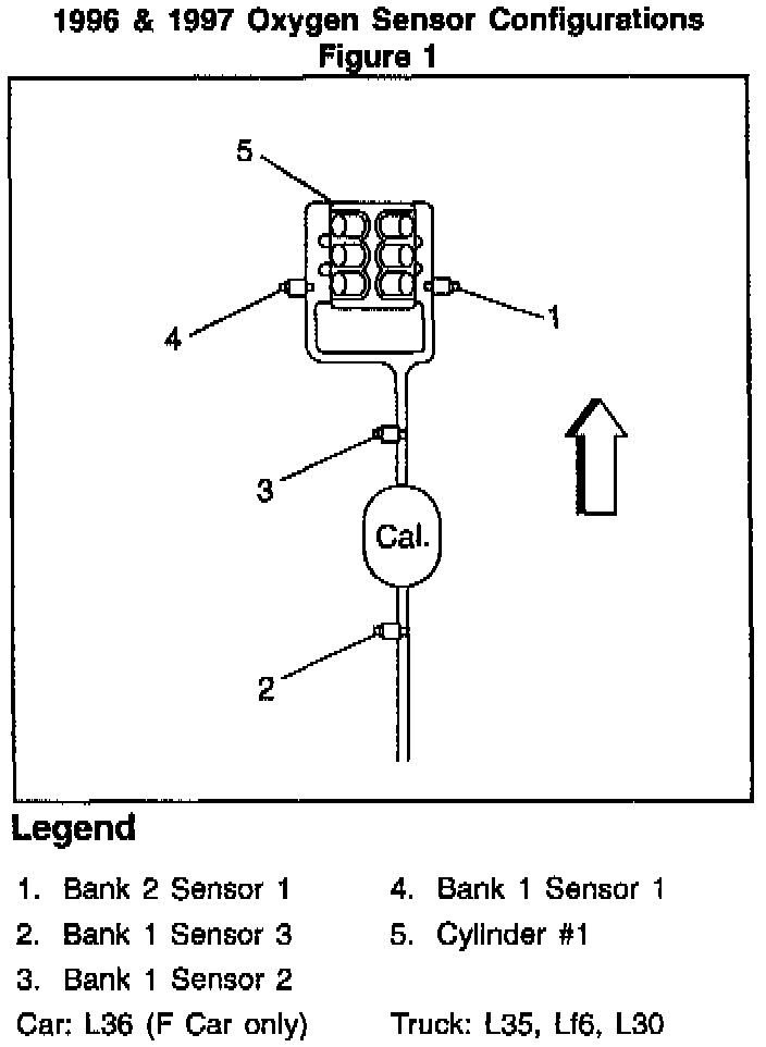 There has been some confusion relative to OBD II oxygen sensor designation. The intent of this bulletin is to eliminate misdiagnosis of those oxygen sensors due to mis-identification. When using Section 6E of the Service Manual, this chart can help locate the appropriate bank and sensor for the diagnostic.