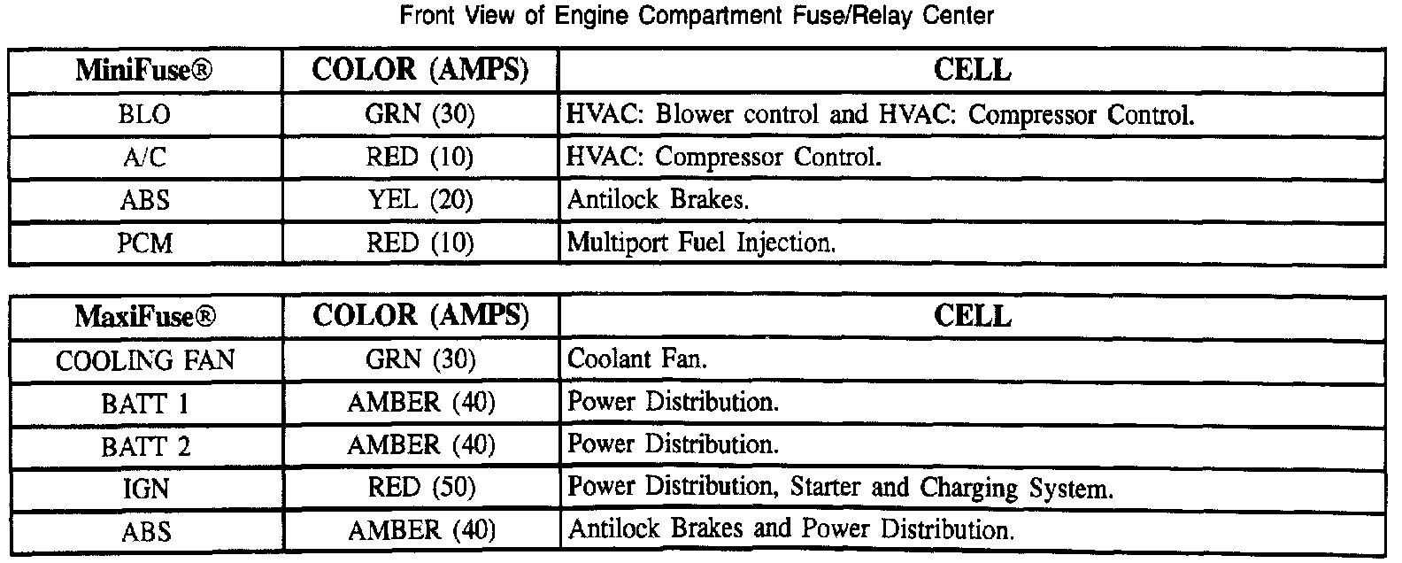 Front View Of Engine Compartment Fuse/Relay Center: