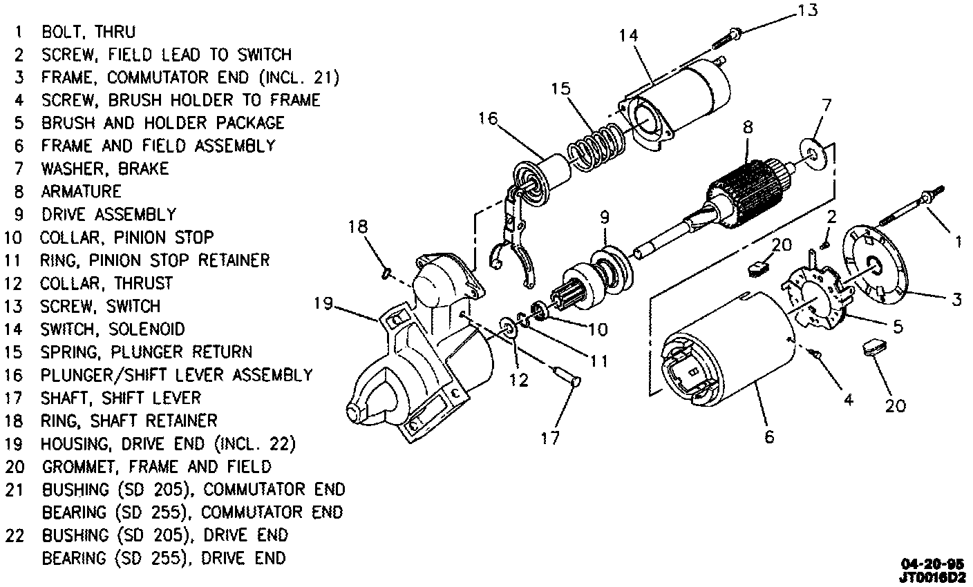 Starter Motor: Disassembled View (SD205/255):