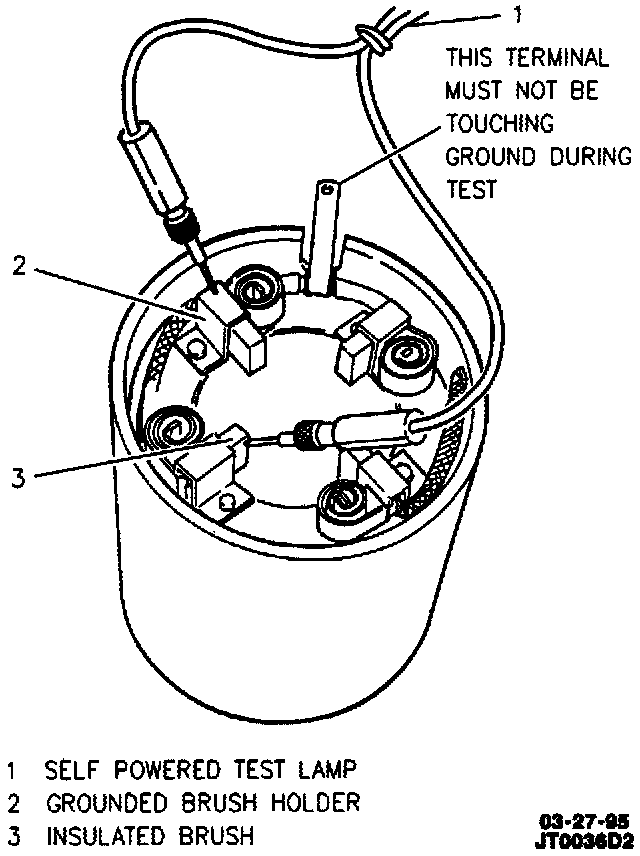 F. Disconnect negative (ground) lead from motor housing (drive pinion will retract into drive end housing), then disconnect positive lead from "S" terminal.