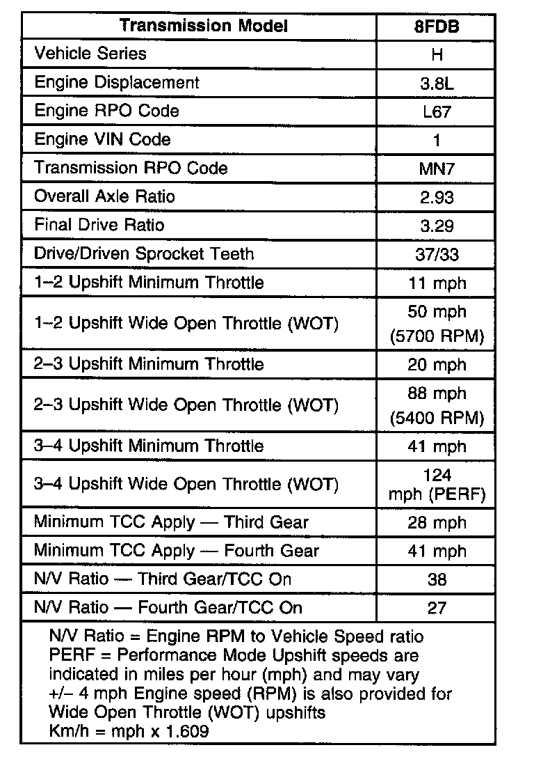 Shift Speed Chart