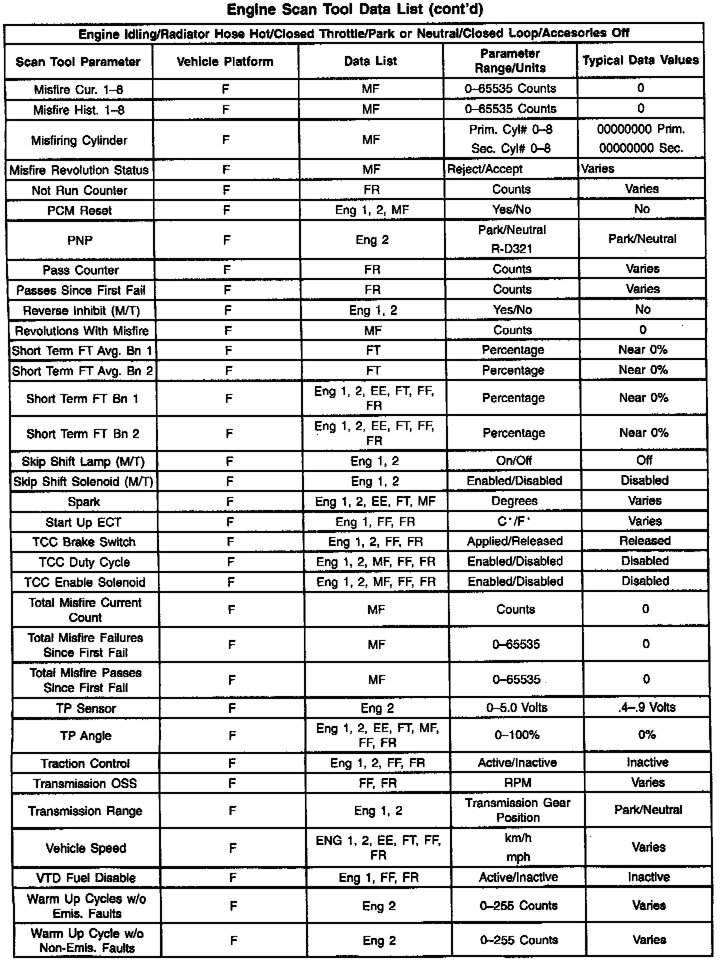 The column labeled Data List indicates where a parameter can be located on the scan tool. Refer to the scan tool operating manual for the exact locations of the data lists. The following is a description of each term listed:
