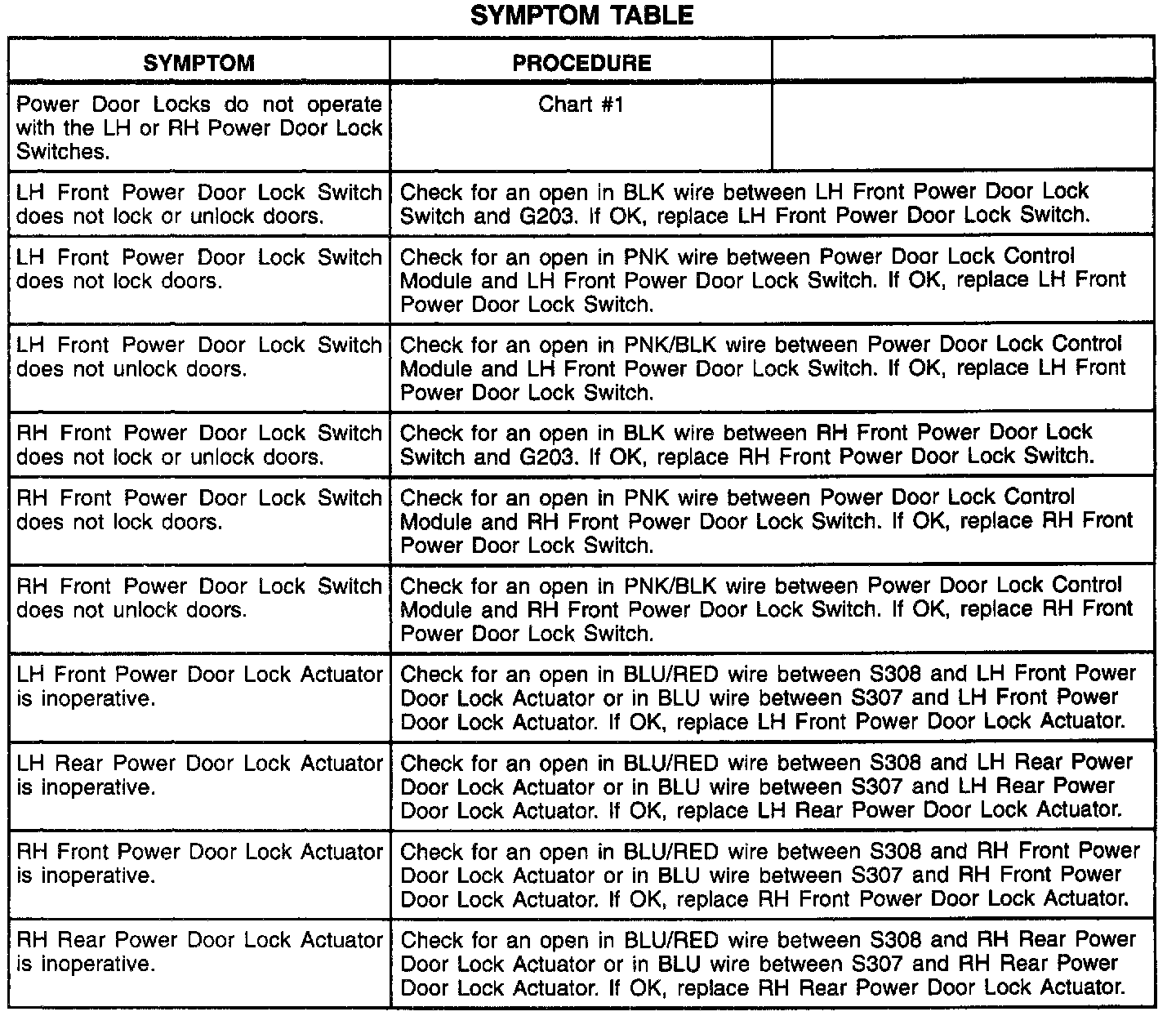 Symptom Table: