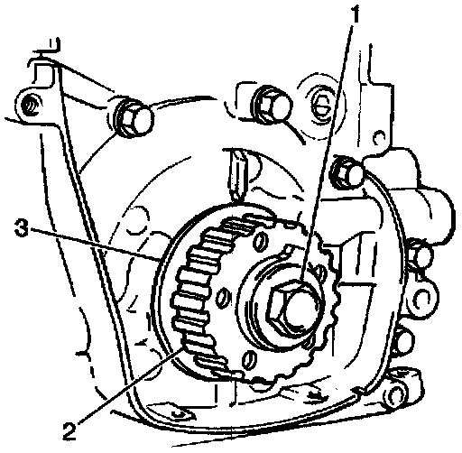 3. Remove the seven oil pump housing mounting bolts and the oil pump housing (5) from the cylinder block.