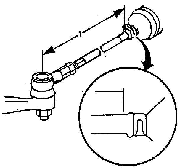 5. Verify that the right and left tie rods are equal in length (1).