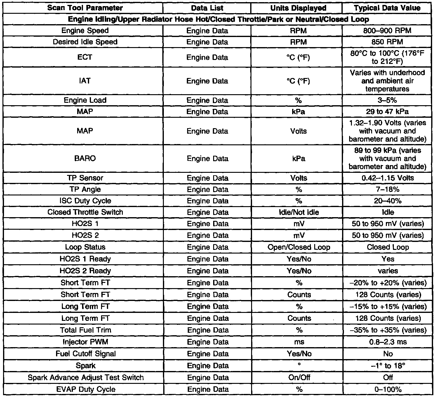 The Engine Scan Tool Data List contains all engine related parameters that are available on the scan tool. The list is arranged in the order shown on the scan tool.