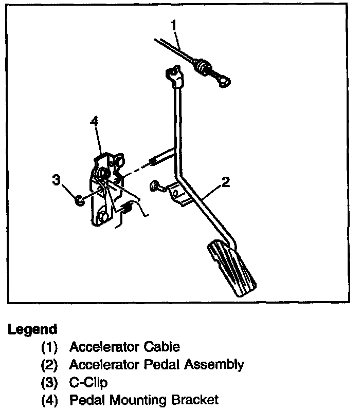 The accelerator control system is cable-operated. When the accelerator pedal is depressed, the cable pulls the throttle lever open (increasing the throttle plate opening). When the accelerator pedal is released, the throttle lever spring pressure returns the throttle lever to the idle position (decreasing the throttle plate opening).