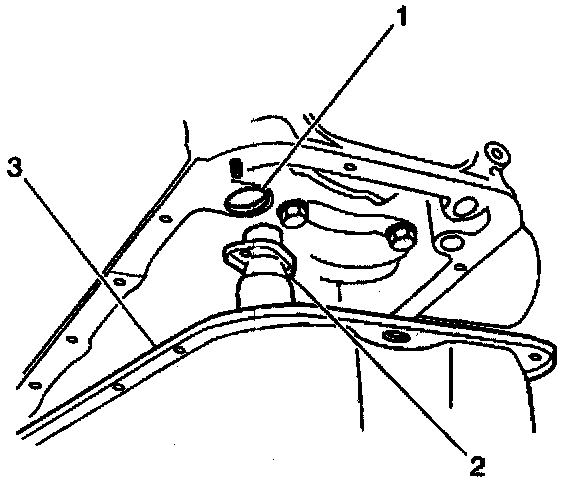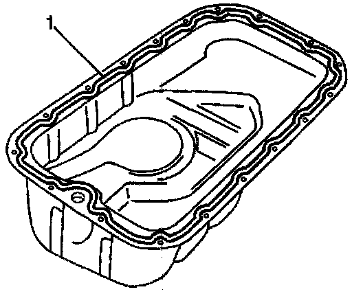 2. Apply a continuous bead of silicon sealant GM P/N 12346240, or an equivalent, to the engine oil pan mating surface (1).