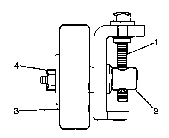 5. Loosen the idler pulley locknut (4).