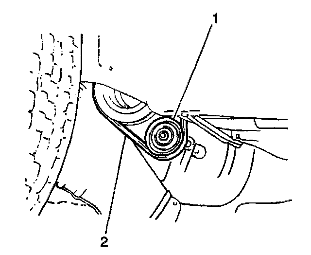 7. Remove the compressor drive belt (2) from the clutch pulley.