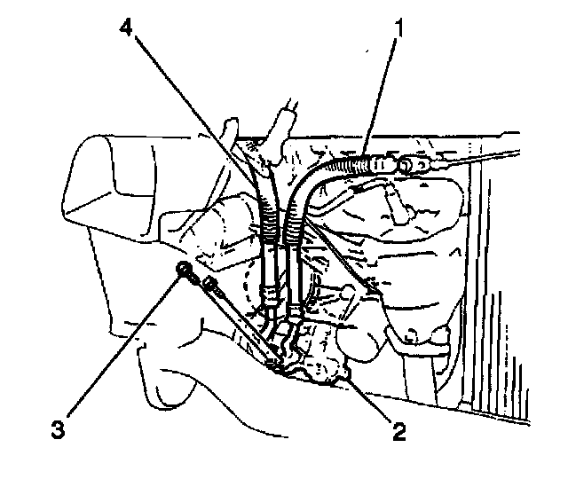 9. Install the discharge and suction hoses (1,4) to the compressor.
