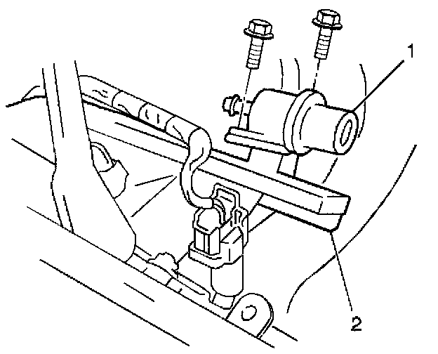 3. Install the fuel pressure regulator (1) to the fuel rail (2).
