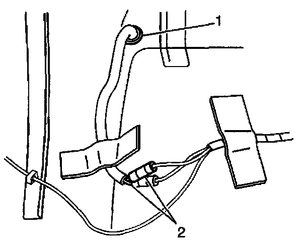 5. Push the electrical connectors through the grommet (1) in the floor of the vehicle.