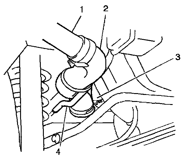 7. Connect the EVAP canister air inlet hose (4) to the EVAP canister air inlet pipe (if equipped) and secure with the clamp.