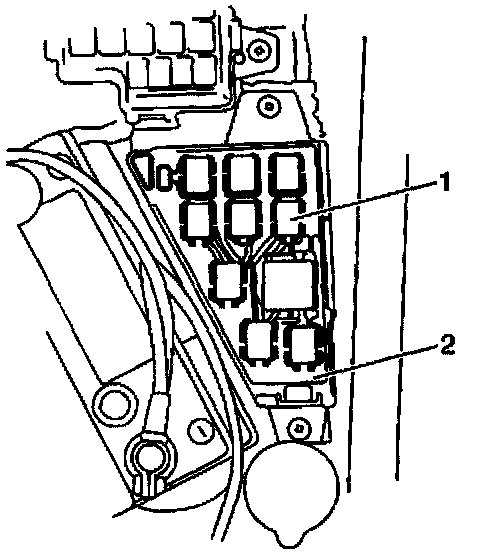 14. Reconnect the Main Relay (1) to the Relay Box (2).