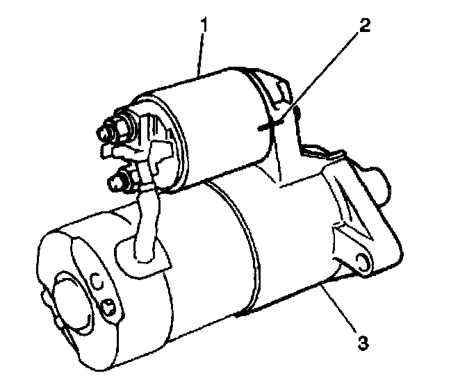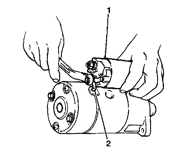 2. Scribe matchmarks (2) on the solenoid and the drive housing to ensure proper solenoid installation.