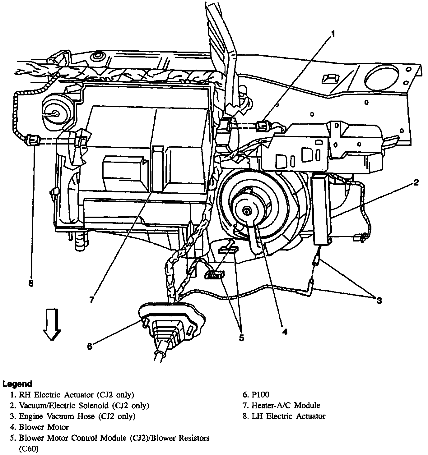 Behind Center Of I/P (CJ2 Shown, C60 Similar):