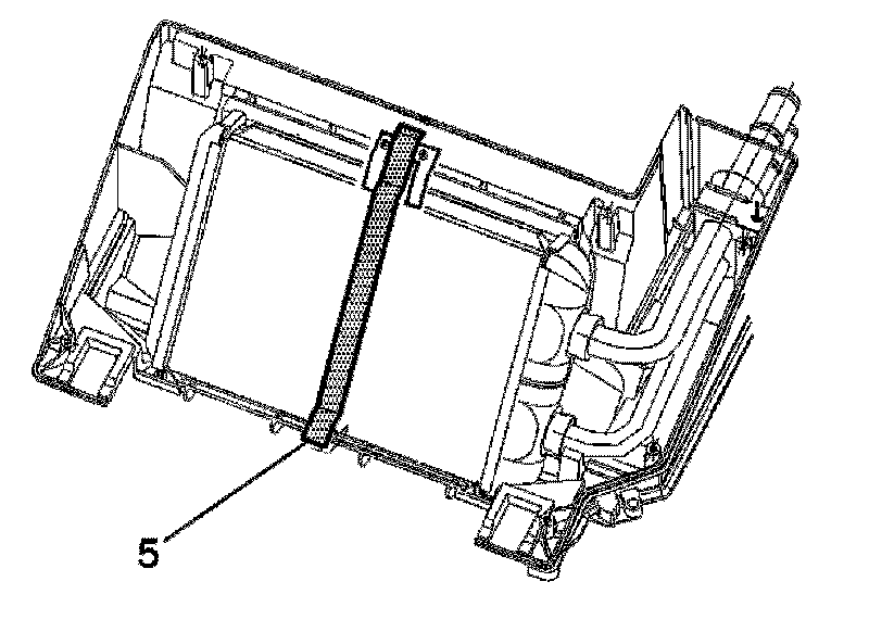12. Remove and discard the heater core outer seal (5) from the heater core.