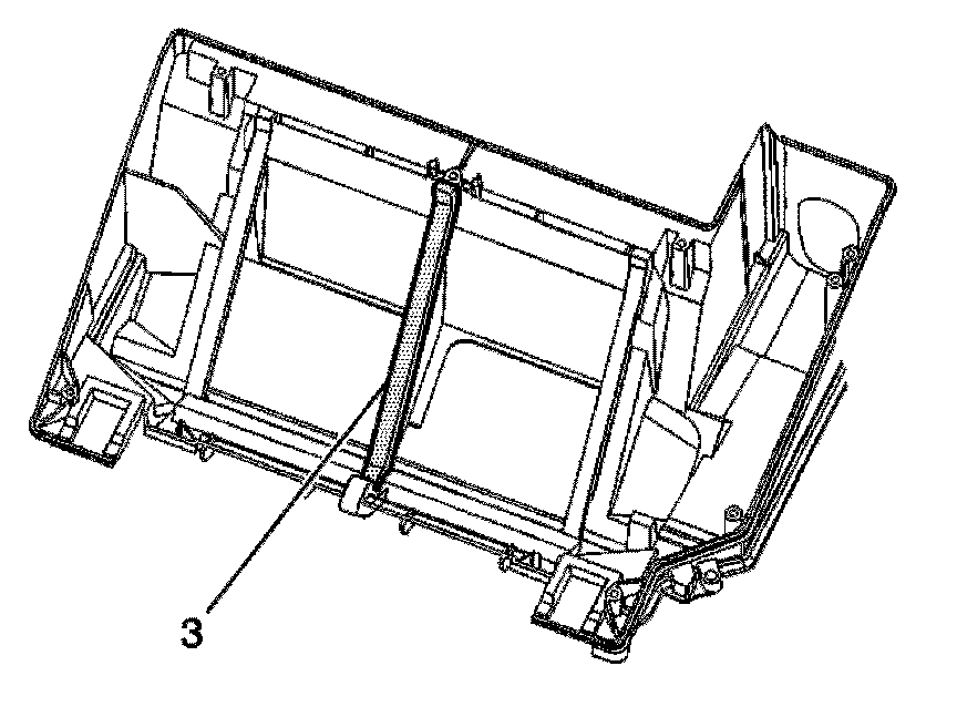 3. Install the heater core center seal (3) from the HVAC case.