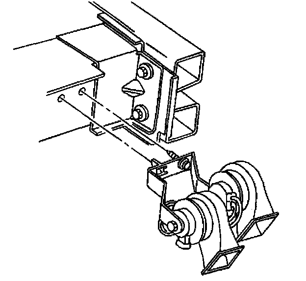 1. Position the horn assembly to the frame rail extension; insert the horn anti-rotation tab into the slot on the frame rail.