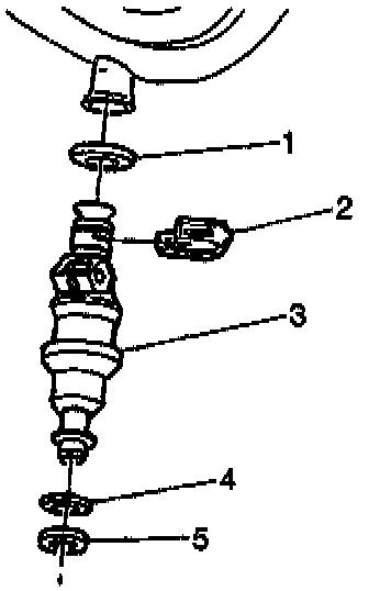 4. Remove the fuel injector lower O-ring (5).