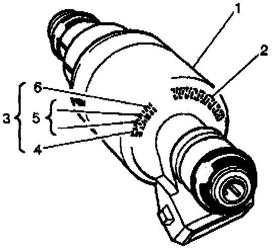 - The fuel injector assembly (1) is stamped with a part number identification (2) and a build date code (3). The build date code consists of the month (4)1-9 (Jan-Sept) 0, N, D, (Oct, Nov, Dec), day (5), and year (6).