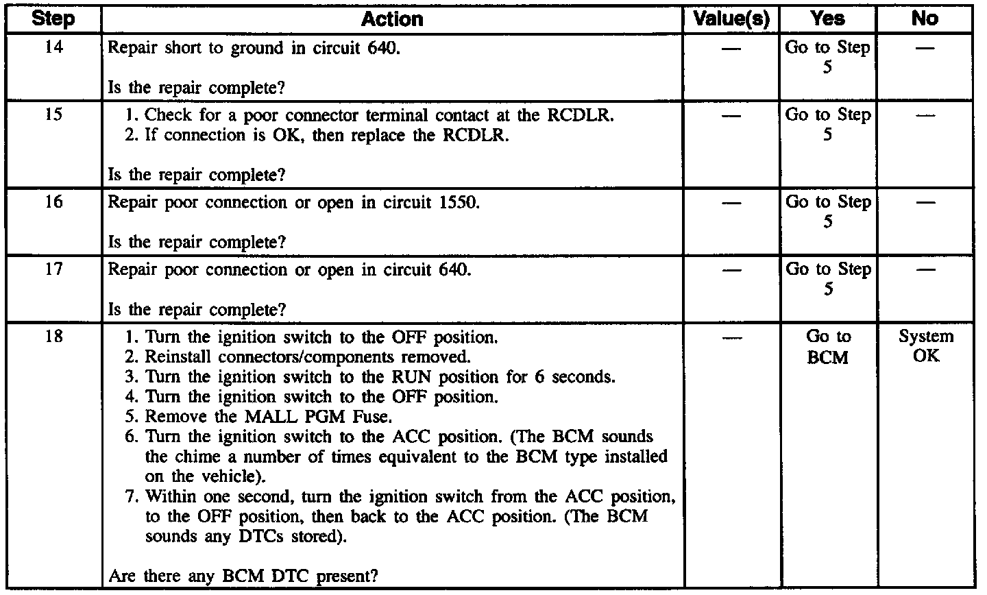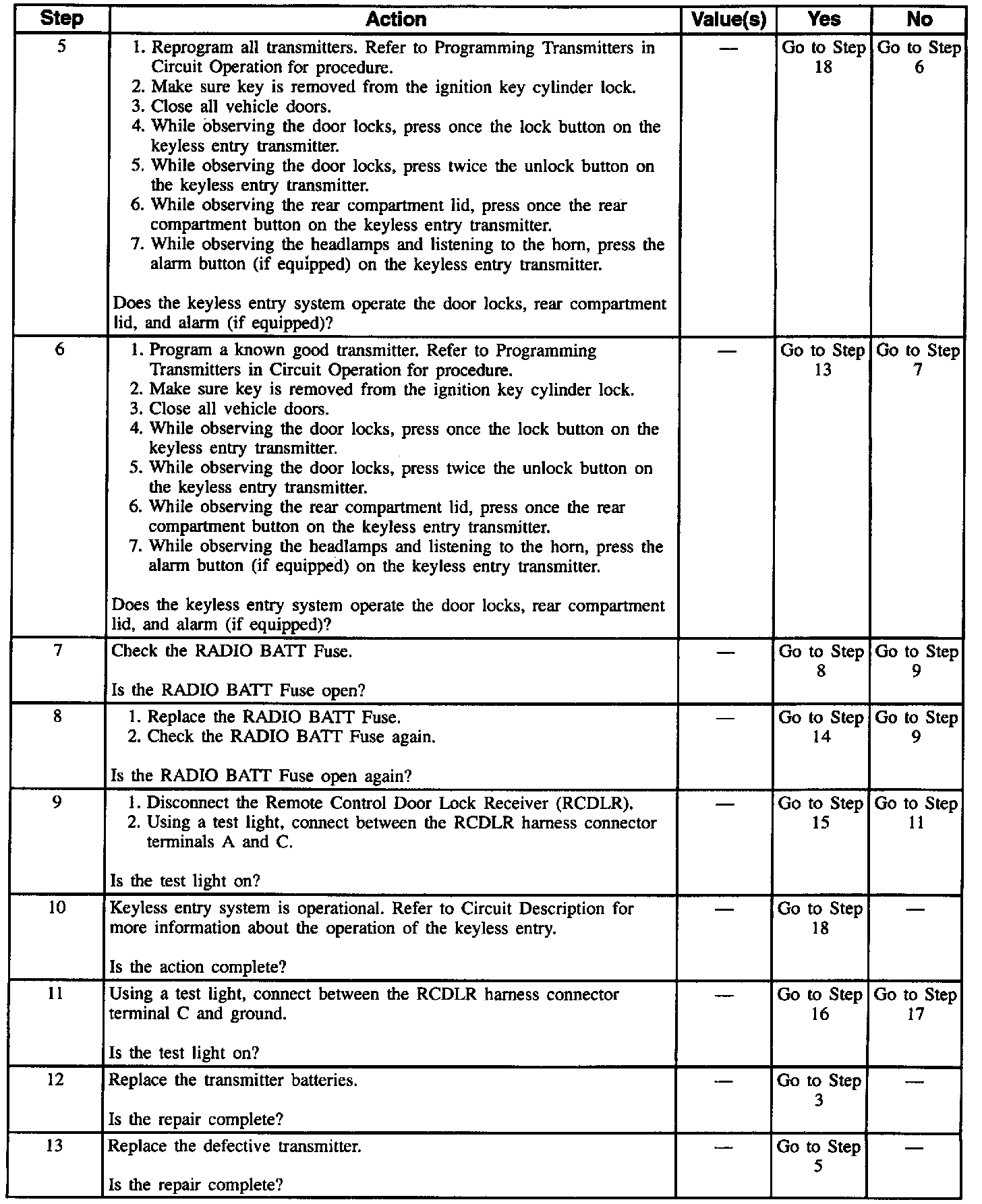 Table 2 Keyless Entry System Completely Inoperative (Part 2 Of 3):