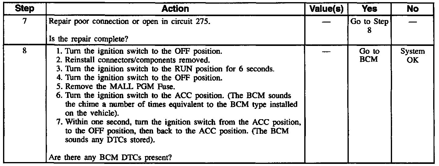 Table 10 Automatic Door Lock Feature Inoperative (Part 2 Of 2):
