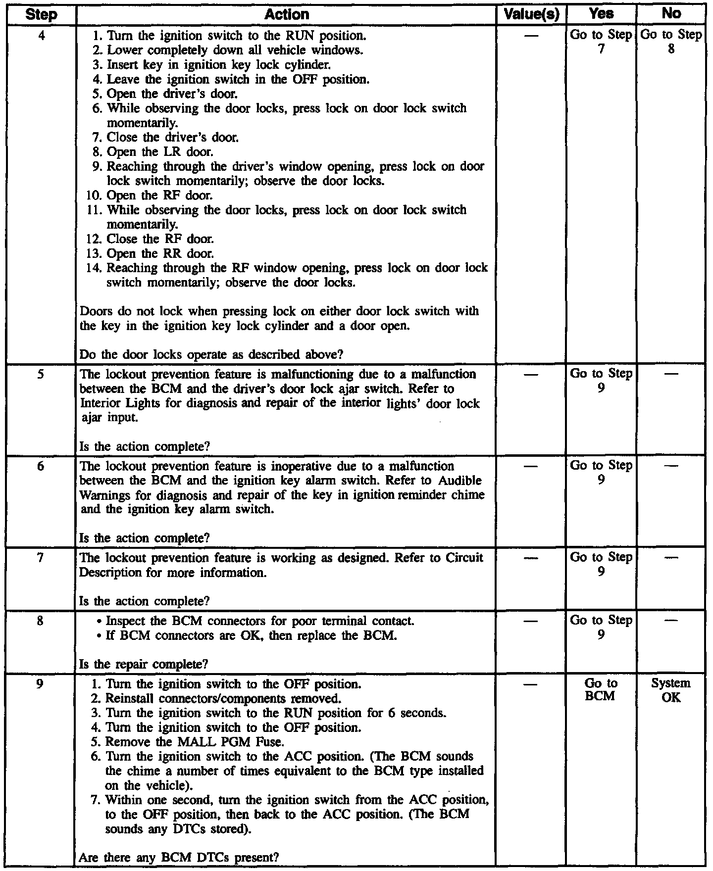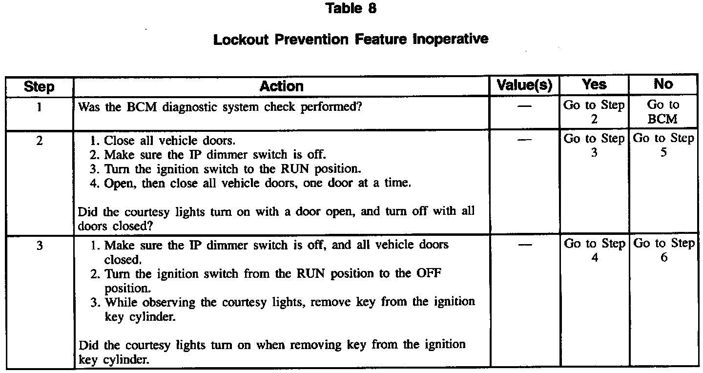 Table 8 Lockout Prevention Feature Inoperative (Part 1 Of 2):