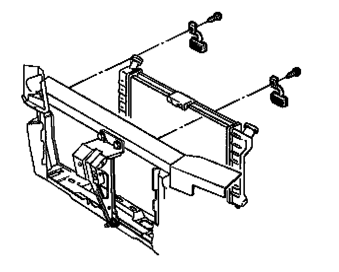 3. Remove the engine strut brace bolts from the upper tie bar and rotate the strut(s) and brace(s) rearward. Refer to Engine Mount Strut Bracket Replacement (Upper Radiator Support) in Engine Mechanical - 3.1L or Engine Mount Strut Bracket Replacement (Upper Radiator Support) in Engine Mechanical - 3.8L.