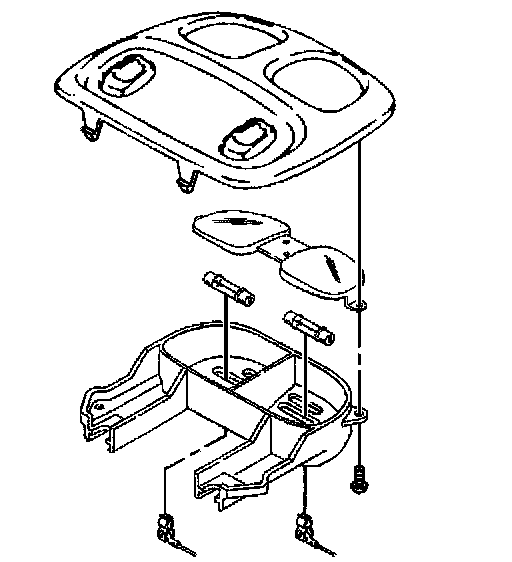 4. Remove the screws retaining the overhead console lamp housing assembly to the lamp bezel.