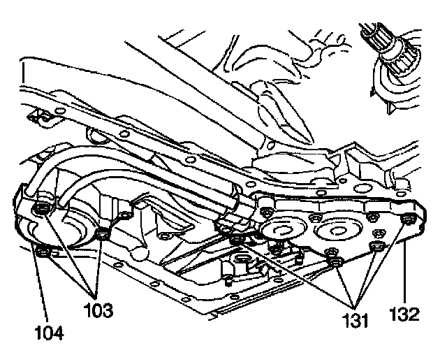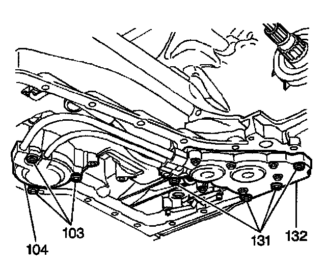 ^ Tighten the manual 2-1 band servo cover bolts (103) to 24 Nm (17 ft. lbs.).