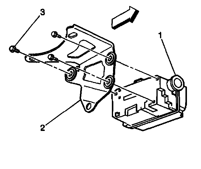 The cruise control module assembly is mounted on the right front strut tower. The module assembly has an electronic controller and an electric stepper motor in order to vary the throttle with each different cruise control mode. The module assembly is not serviceable.